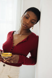 Pull en laine et coton avec patte de boutonnage bordeaux