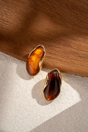 Boucles d’oreilles dorées ambre goutte chic résine élégante: Brun