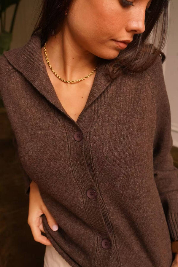 Ce cardigan en maille fine se distingue par son design épuré et sa confection soignée. Doté d’un col chemise structuré et d’une fermeture à boutons discrets, il présente une coupe droite qui assure confort et fluidité.