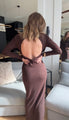 Robe longue en maille fine lisse. Col rond côtelé avec manches longues. Ouverture dans dos arrondi. Finition côtelette. Coupe droite.